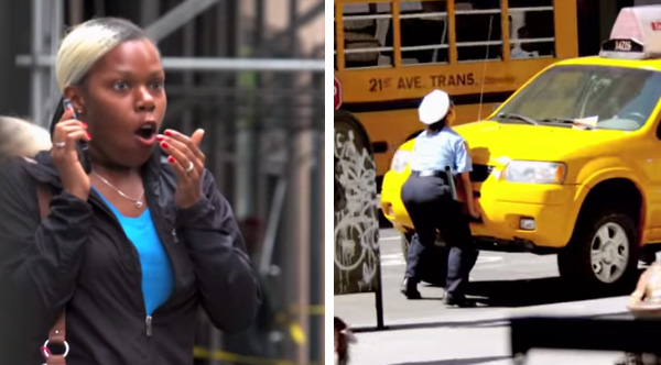 Watch This Meter Maid LIFT A Taxi Cab In Front Of Horrified New Yorkers