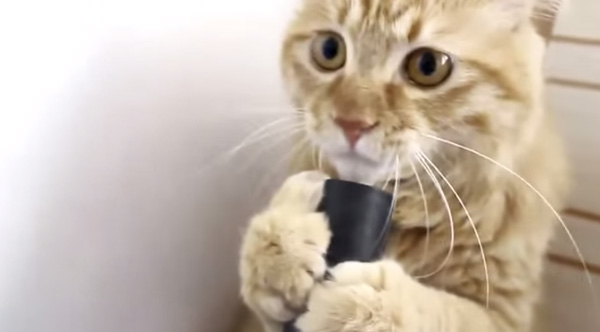 Most cats run from vacuums, but this one appears to thoroughly enjoy licking the suction. I love his facial expression when his chin gets sucked in!