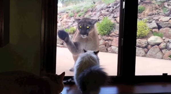 This House Cat Is Not Afraid Of The Mountain Lion. But Where Are The Kids?