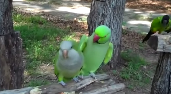 Watch This Loving Parrot Ask Another Parrot For A Kiss, And Then Plant One On Her