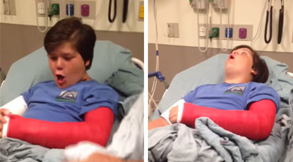 Walker broke his arm and needed surgery. He woke up from anesthesia in a great mood.