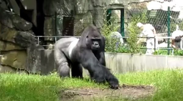 I'm fairly certain this gorilla assessed the situation and decided it was the perfect time to strike. I love how he runs away like he planned it all!