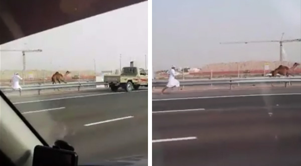 Video Of Barefoot Man Sprinting Down The Highway After His Runaway Camel Is Priceless!
