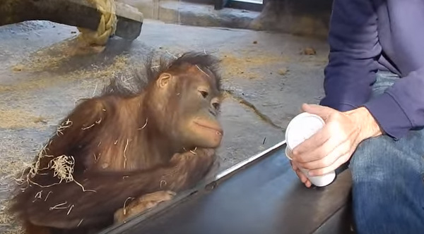 He Does A Magic Trick For A Curious Orangutan. I Can't Stop Smiling At His Reaction!