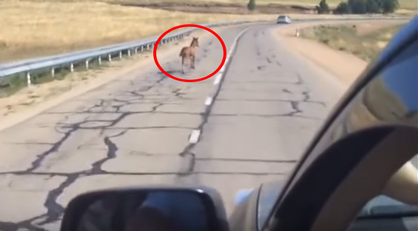 A young horse was in the middle of a road and having trouble finding his family. Thankfully this man stopped to help.