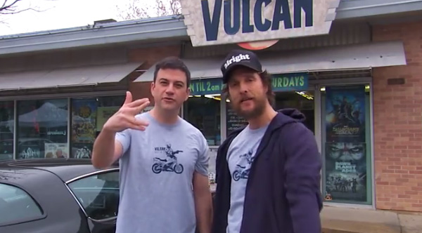 Before a trip to Austin, Jimmy posted a tweet asking for any local business that might want him to help them produce a TV commercial. He decided on Vulcan Video and enlisted the help of a certain Texan movie star.