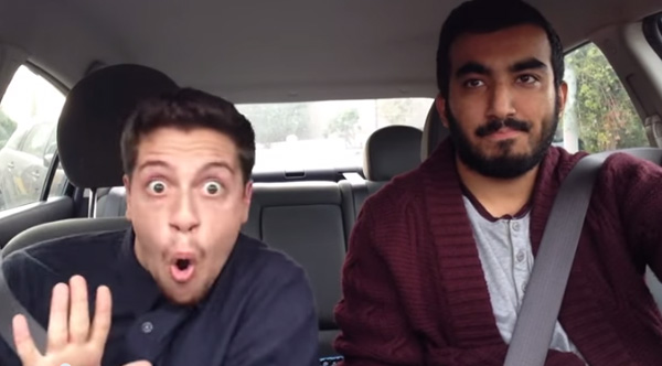He picks up his friend and immediately regrets it when 'Uptown Funk' comes on the radio. The faces he makes are hilarious!