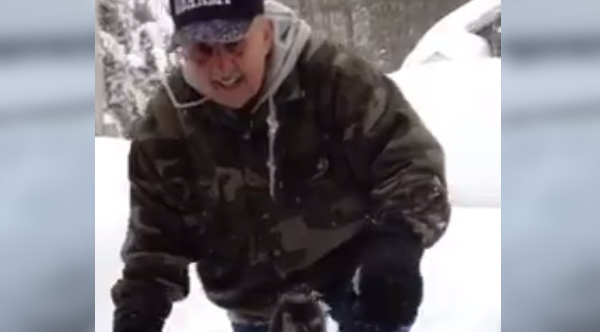 She films her husband trying to get inside after shoveling snow. The laugh is better than the video!