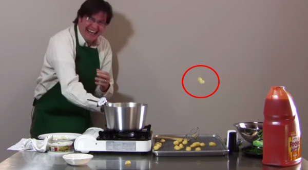 Steve shows us all how NOT to prepare gnocchi (soft dough dumplings). His reaction is priceless!