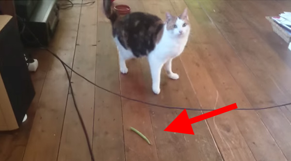 So either the cat likes to fetch string beans, or hates them so much she doesn't want them on her side of the room.