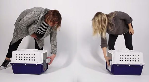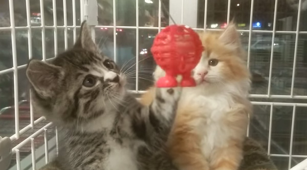 One crate is filled with puppies and the other is filled with kittens. This is what happens when they all meet for the first time.