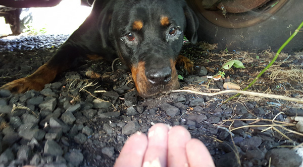 Man Rescues An Abused Rottweiler That Is Too Scared To Come Out From Under A Van