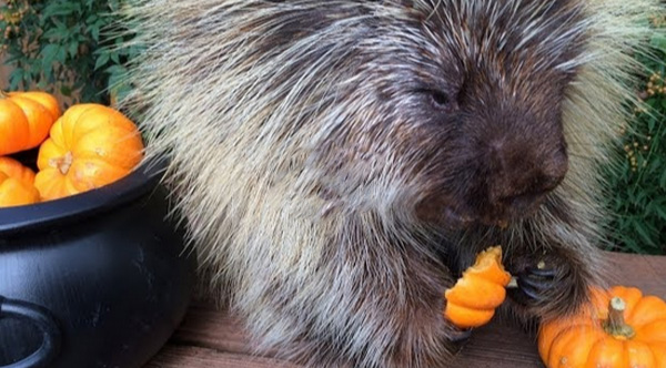 This Porcupine Can't Contain His Excitement When He Tries Some Pumpkins For The First Time