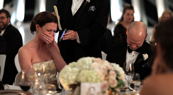 A very emotional wedding video where the grandfather who couldn't make the wedding gave his speech over the phone.