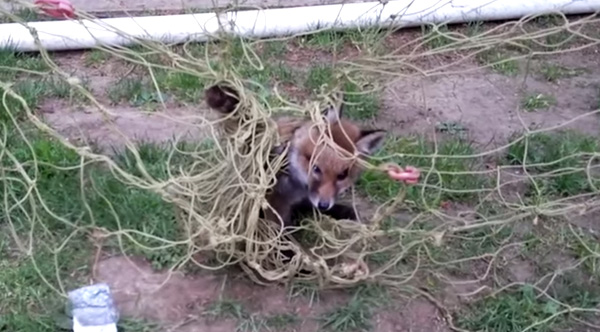Adorable Baby Fox Gets Rescued After Becoming Completely Entangled In A Football Net