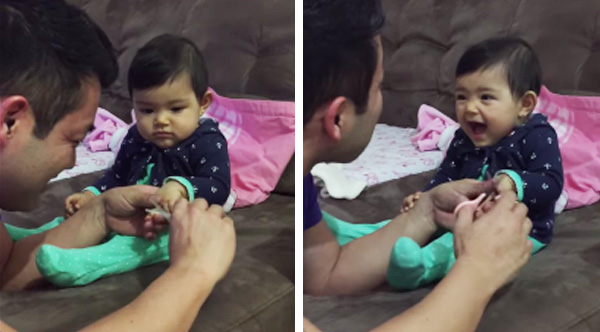 Watch This Adorable Baby Fake Cry Every Time Dad's About To Cut Her Nails