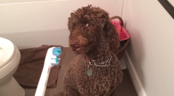 Virgil the Poodle has mixed feelings about proper oral hygiene.