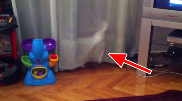 Ninja Cat Attacks The Dog From Behind Curtains To Remain Undetected