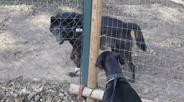 Doberman Engages In Staring Contest With Wolf, Apologizes For The Inconvenience