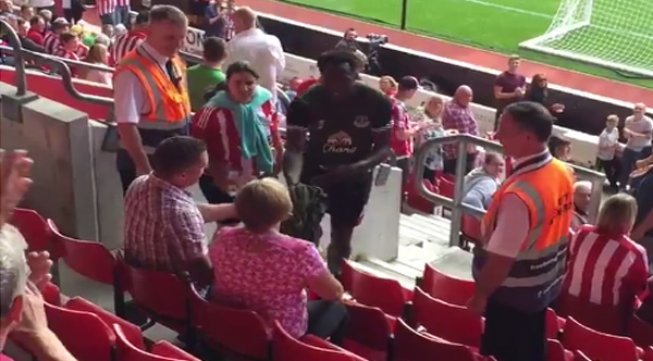 Romelu Lukaku was off-target in warm ups and drilled an opposing team fan sitting behind the goal. So this is what he did.