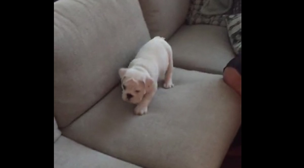 Watch This English Bulldog Puppy Adorably Stalk His 'Prey'