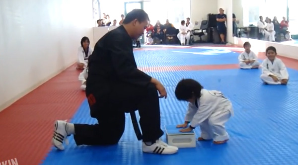 To earn his first belt in his Taekwondo class, this little 3-year-old martial arts prodigy had to pass his first board breaking test.