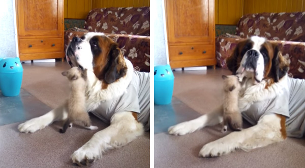 This Tiny Kitten And Giant Dog Playing Is One Of The Cutest Things You'll Ever See