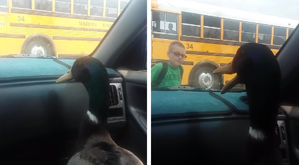 She Always Takes The Duck To Pick Up Her Son From The Bus Stop, And THIS Is Why