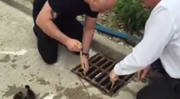 Two Guys Go Above And Beyond To Rescue Ducklings Trapped Under A Sewer Grate