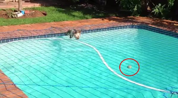 Determined Dog Becomes A Tightrope Walker To Fetch His Ball From The Pool