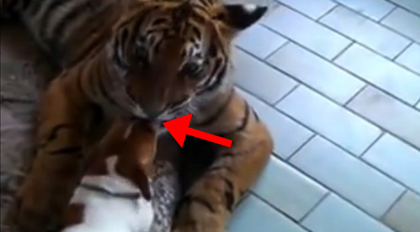 Brave Jack Russell Runs Up And Shoves His Head In A Tiger's Mouth. Extreme Cuteness Ensues