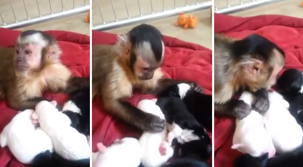Monkey Meets Puppies For The First Time, But I Couldn't Believe It When He Did This
