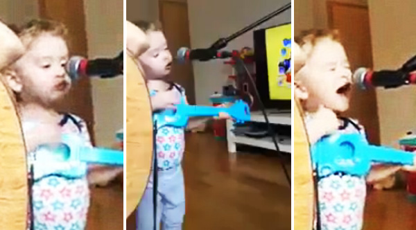 Amazing 2 Year-Old Sings Ed Sheeran Into A Mic While Playing His Toy Guitar, Becomes Internet Sensation