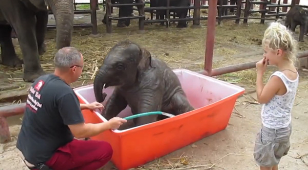 Watch this baby elephant proceed to have the time of her life in a bathtub.