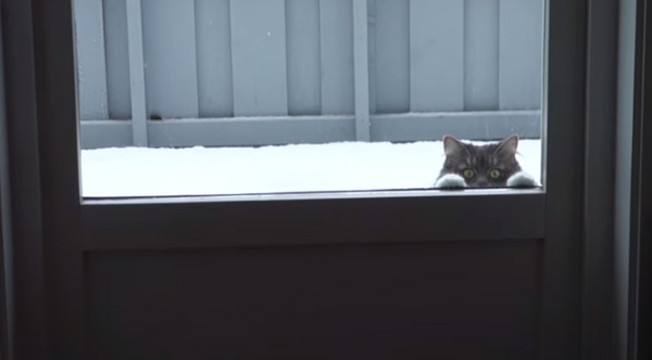 Now here's one determined kitty! A massive snow storm wasn't keeping Rudiger inside all day.