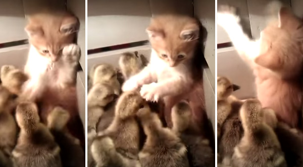 A Kitten Jumps Into A Box Full Of Ducklings... And Immediately Regrets That Decision