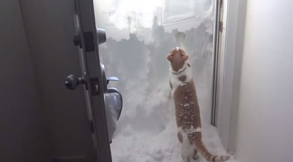 Determined Cat Tries To Dig Out The Front Door After Big Snow Storm