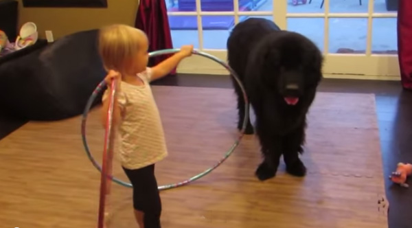 This Little Girl Teaching Her Giant Puppy How To Hula Hoop Will Brighten Your Day