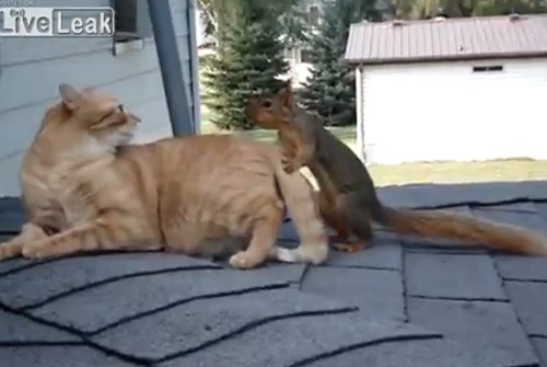 Wild Squirrel Drops By To Play With The Cat... This Is Awesome