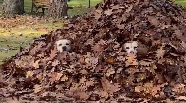 He Drove Past A Giant Pile Of Leaves, Then Noticed Eyes Staring Back
