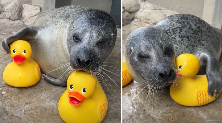 An airport worker is winning hearts online after someone captured him showing kindness to animals.