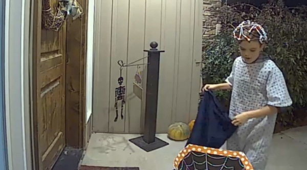 Security Camera Captures Trick-Or-Treater's Act Of Kindness On Halloween
