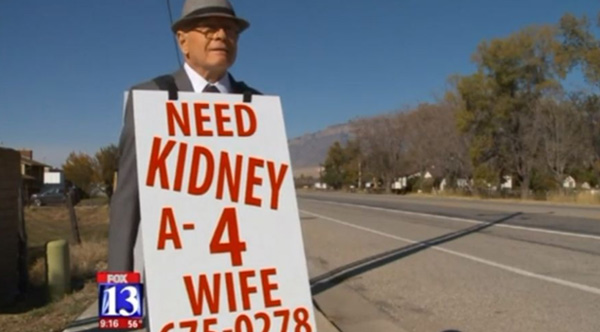 A 74-year-old Utah man is walking miles a day on a mission to find his wife a kidney donor.