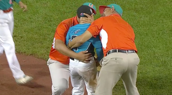 Dominican pitcher Edward Uceta was absolutely crushed after giving up the hit and collapsed, sobbing on the mound.