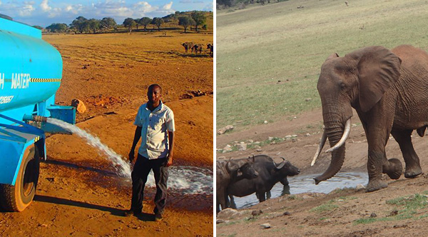 An African pea farmer has been ensuring wild animals in drought-stricken Kenya do not go thirsty.