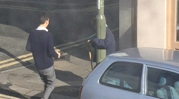 Young Man Spots Terrified Elderly Woman Clinging To A Lamp Post And Walks Her Home