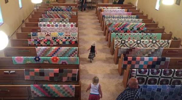 On the day of Margaret's funeral, her children and grandchildren decided to honor her memory by draping all of the quilts that she had ever made over the backs of the church pews.