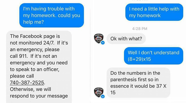 Police Help A 5th-Grader With Her Math Homework After She Messages The Dept. On Facebook