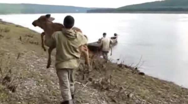 Central Siberia Nature Reserve's officials rescued two moose calves that risked drowning in the Podkamennaya Tunguska River in the Krasnoyask region.