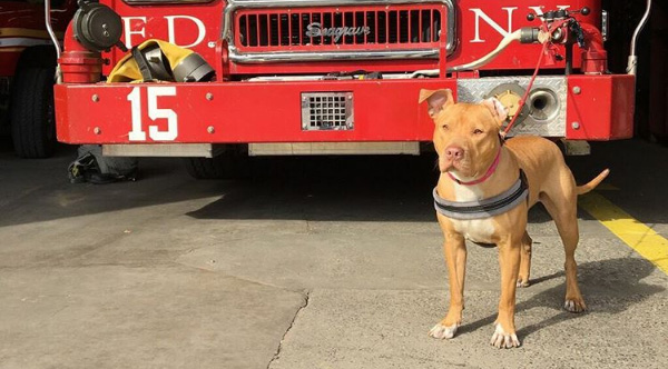 Pit Bull Rescued From Abandoned Crack House Becomes Firehouse Dog